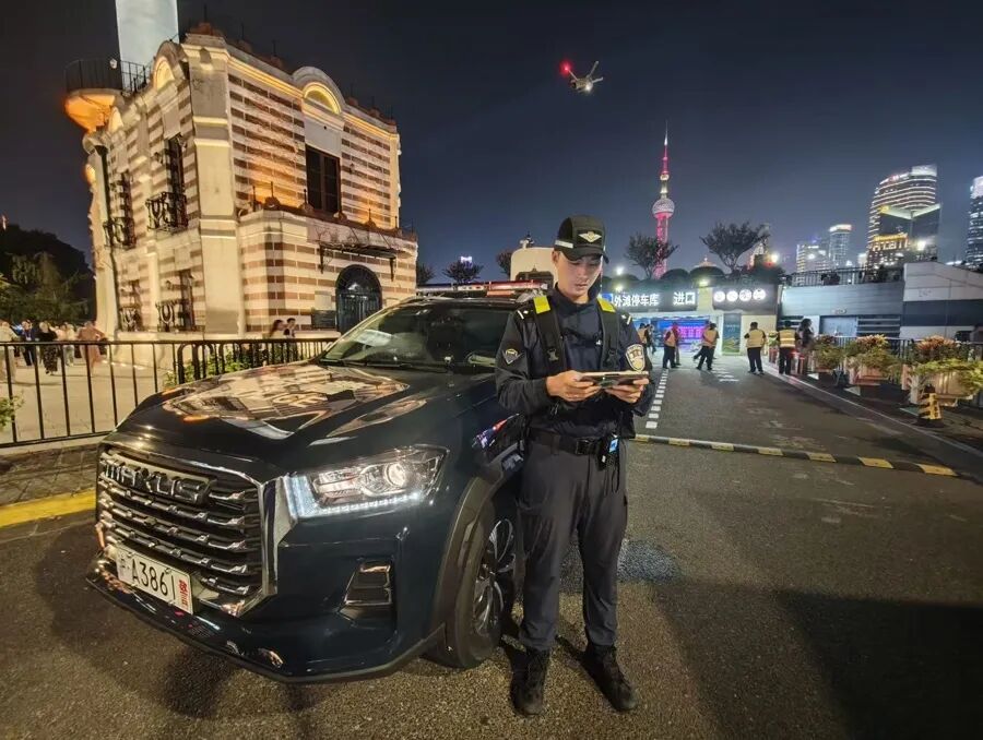 对于城市无人机管控,警方在专项整治中展现出多元化的治理策略。黄浦公安作为本市中心区域执法力量,强化法治支撑,在“地面、空中、网端”三维管控中织密空中防护网,行动中,科技赋能成为提升执法效能的重要力量,警方依托智能巡查系统,能够实时捕捉违规飞行轨迹,迅速锁定飞手位置。属地派出所协同分局低空警务专班,在外滩区域开展警用无人机常态化巡航与宣传提示。在外滩滨江,警用无人机搭载视频与广播系统,一方面实时管理区域空域情况,另一方面循环播报合规飞行要求。精准宣传是杜绝违规的另一重要举措。警方协调相关部门探索对接通信运营商,向景区市民游客推送定制化短信,内容涵盖管制区域范围、“随申办”报备步骤、“黑飞”警示案例等实用信息。同时,警方推动建立多方协同监管机制。外滩治安派出所组织重点楼宇、企事业单位及物业负责人召开“无人机管控联防会”,明确各方在违规飞行劝阻、突发事件处置中的职责。