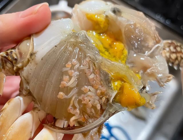 有网友打开梭子蟹后,发现内部有很多不明生物在蠕动,认为梭子蟹里有很多寄生虫,不能吃。
